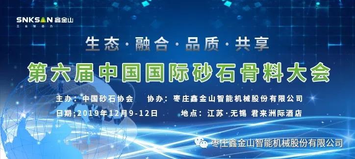 導讀:為加強各國砂石骨料行業(yè)的交流與合作,推動(dòng)砂石骨料工業(yè)的轉型升級、綠色發(fā)展和高質(zhì)量發(fā)展,打造全球砂石骨料工業(yè)的命運共同體。由中國砂石協(xié)會(huì )主辦的第六屆中國國際砂石骨料大會(huì )將于12月9日-12日在江蘇無(wú)錫召開(kāi)。棗莊鑫金山智能機械股份有限公司作為協(xié)辦單位,誠邀您蒞臨。