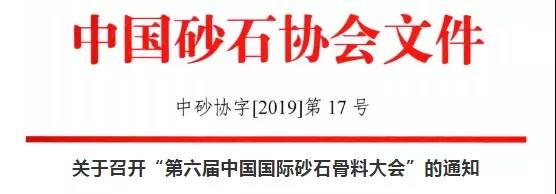 為加強各國砂石骨料行業(yè)的交流與合作,助力優(yōu)化全球砂石資源配置,推動(dòng)砂石骨料工業(yè)的轉型升級、綠色發(fā)展和高質(zhì)量發(fā)展,發(fā)揮砂石骨料產(chǎn)業(yè)對全球經(jīng)濟的支撐和拉動(dòng)作用,共同打造全球砂石骨料工業(yè)的命運共同體,經(jīng)中國砂石協(xié)會(huì )與多國相關(guān)協(xié)會(huì )和組織共同商議,定于2019年12月9~12日在江蘇無(wú)錫召開(kāi)“第六屆中國國際砂石骨料大會(huì )”,同期舉辦“第四屆中國國際建筑固廢資源化利用大會(huì )”、“第五屆全國砂石骨料大賽”、“第八屆全國砂石行業(yè)書(shū)畫(huà)攝影展”、 “中國砂石協(xié)會(huì )第七屆十次常務(wù)理事會(huì )” 、“中國砂石協(xié)會(huì )2019年年會(huì )”等活動(dòng)。