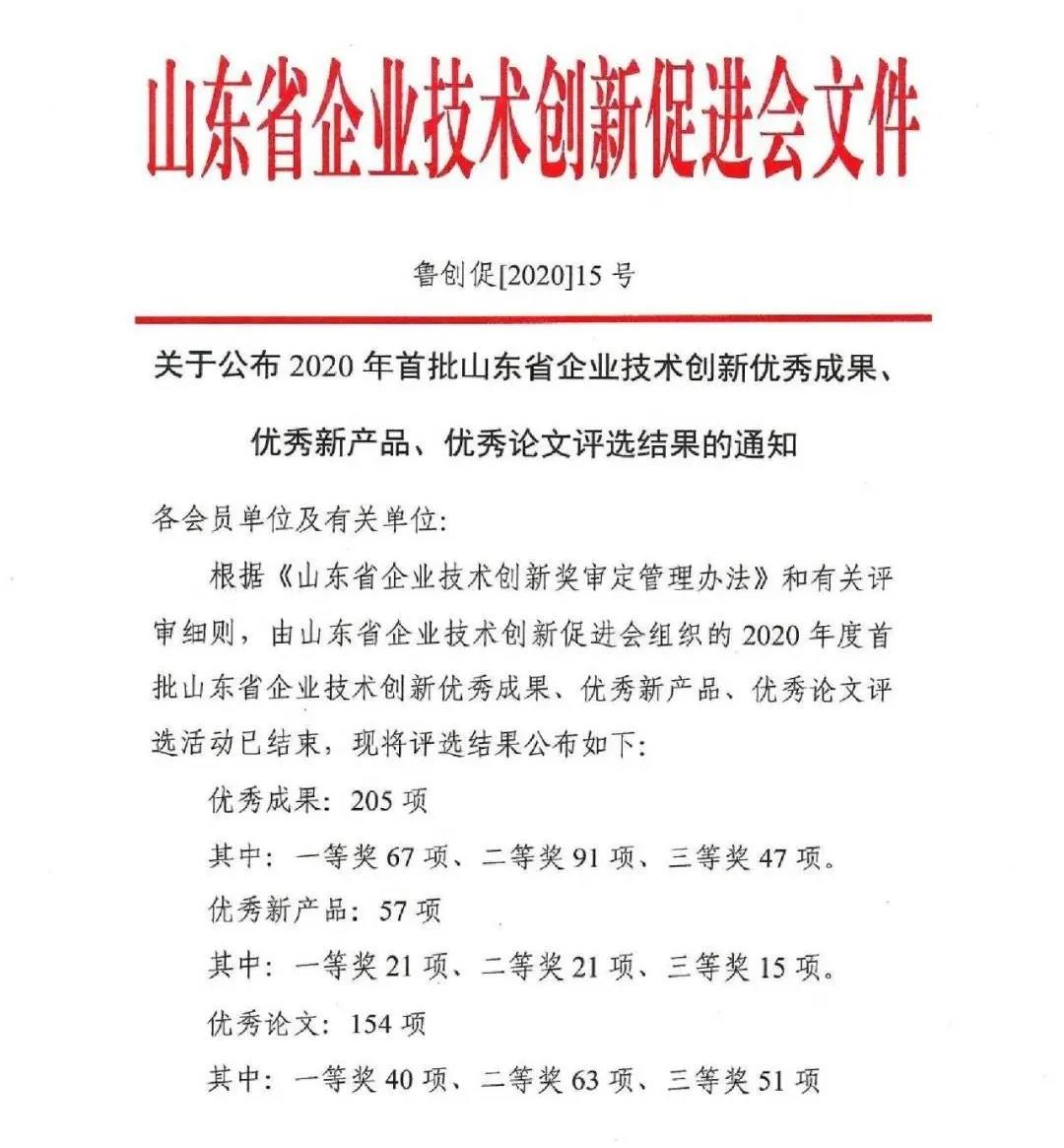 “山東省企業(yè)優(yōu)秀創(chuàng )新成果一等獎”是公司在提高自主創(chuàng )新能力、走創(chuàng )新持續發(fā)展道路上取得的又一個(gè)重要的資質(zhì)榮譽(yù),此次成功獲獎,不僅標志著(zhù)相關(guān)部門(mén)對公司核心自主知識產(chǎn)權及科技研發(fā)實(shí)力的肯定,也是對公司日益強大的技術(shù)研發(fā)水平、堅持自主創(chuàng )新能力和品牌價(jià)值的認可。