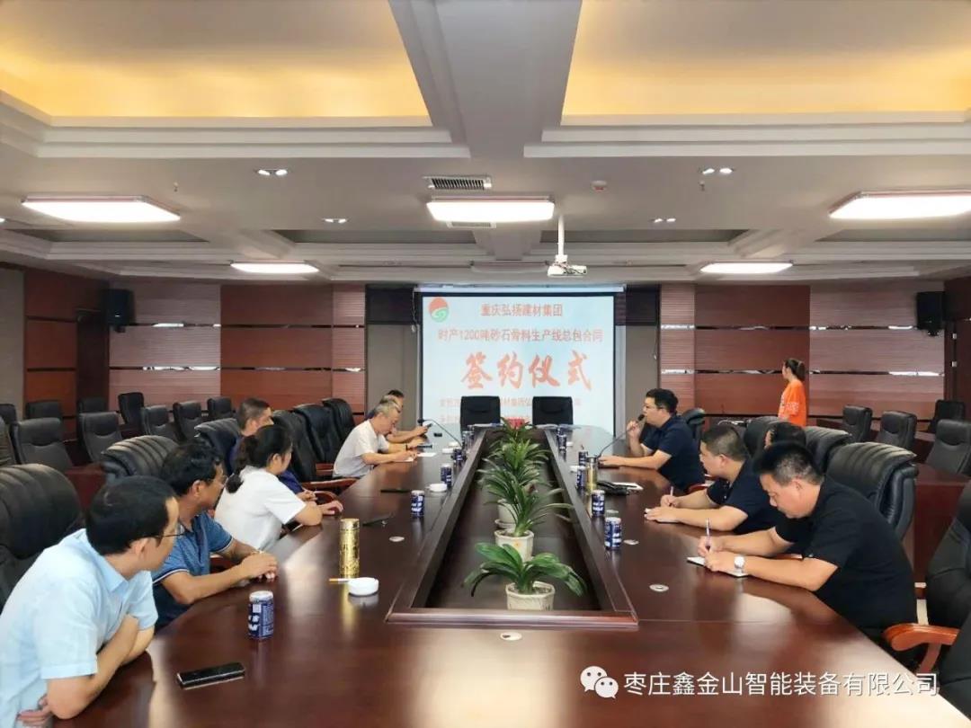 導讀:8月8日9點(diǎn)18分,棗莊鑫金山智能裝備有限公司與重慶弘揚建材集團在重慶黔江區弘揚集團總部會(huì )議室正式舉行了簽約儀式,成功簽訂EPCO項目合作協(xié)議,開(kāi)啟了雙方長(cháng)期戰略合作。