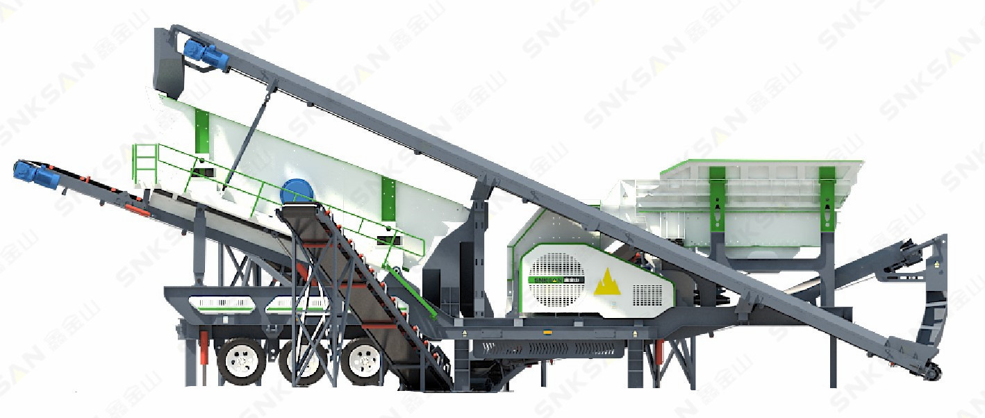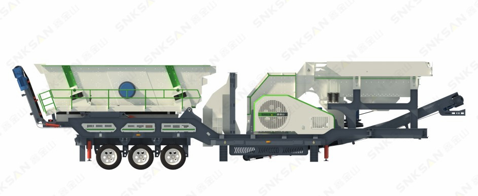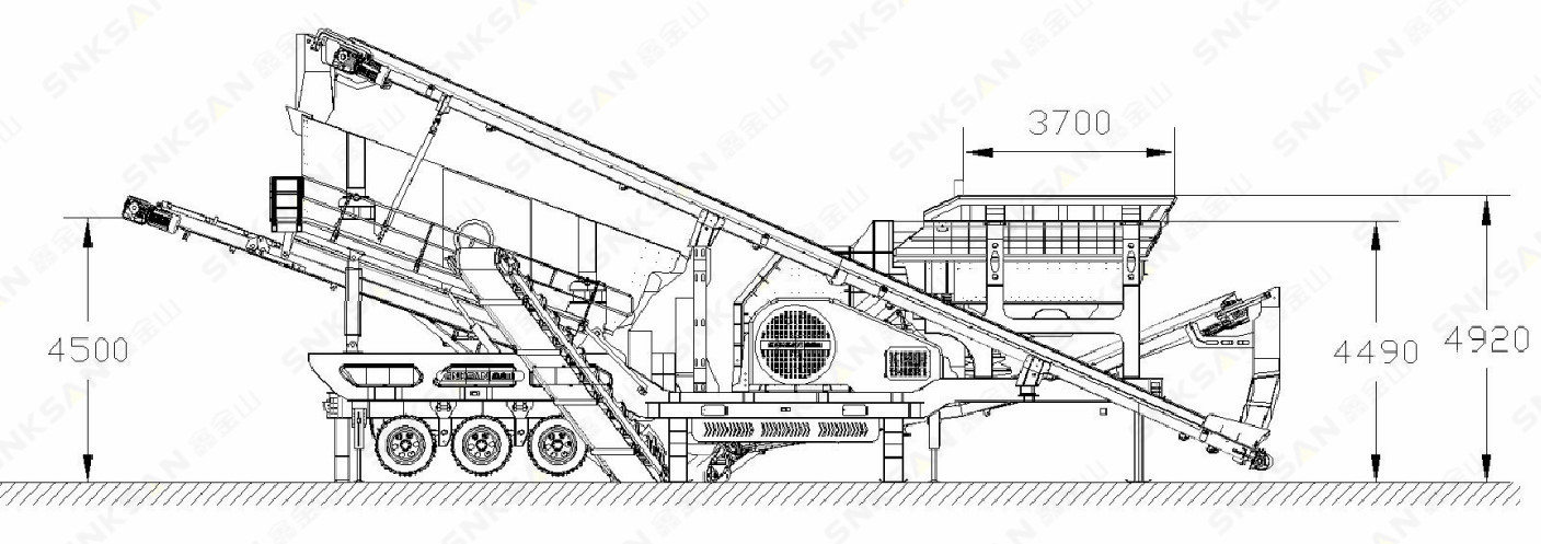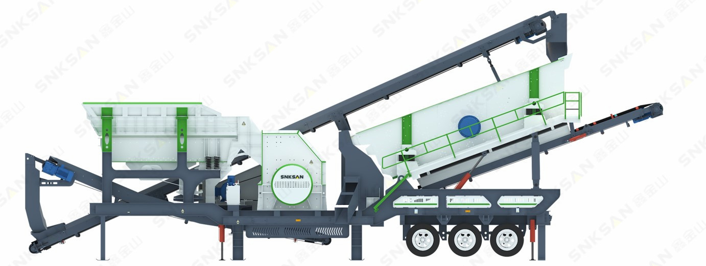 移動(dòng)站整機配置給料機、錘破、振動(dòng)篩和皮帶輸送機,集破碎、篩分、給料和物料輸送于一體,高度集成,是一個(gè)移動(dòng)的小型生產(chǎn)線(xiàn)。