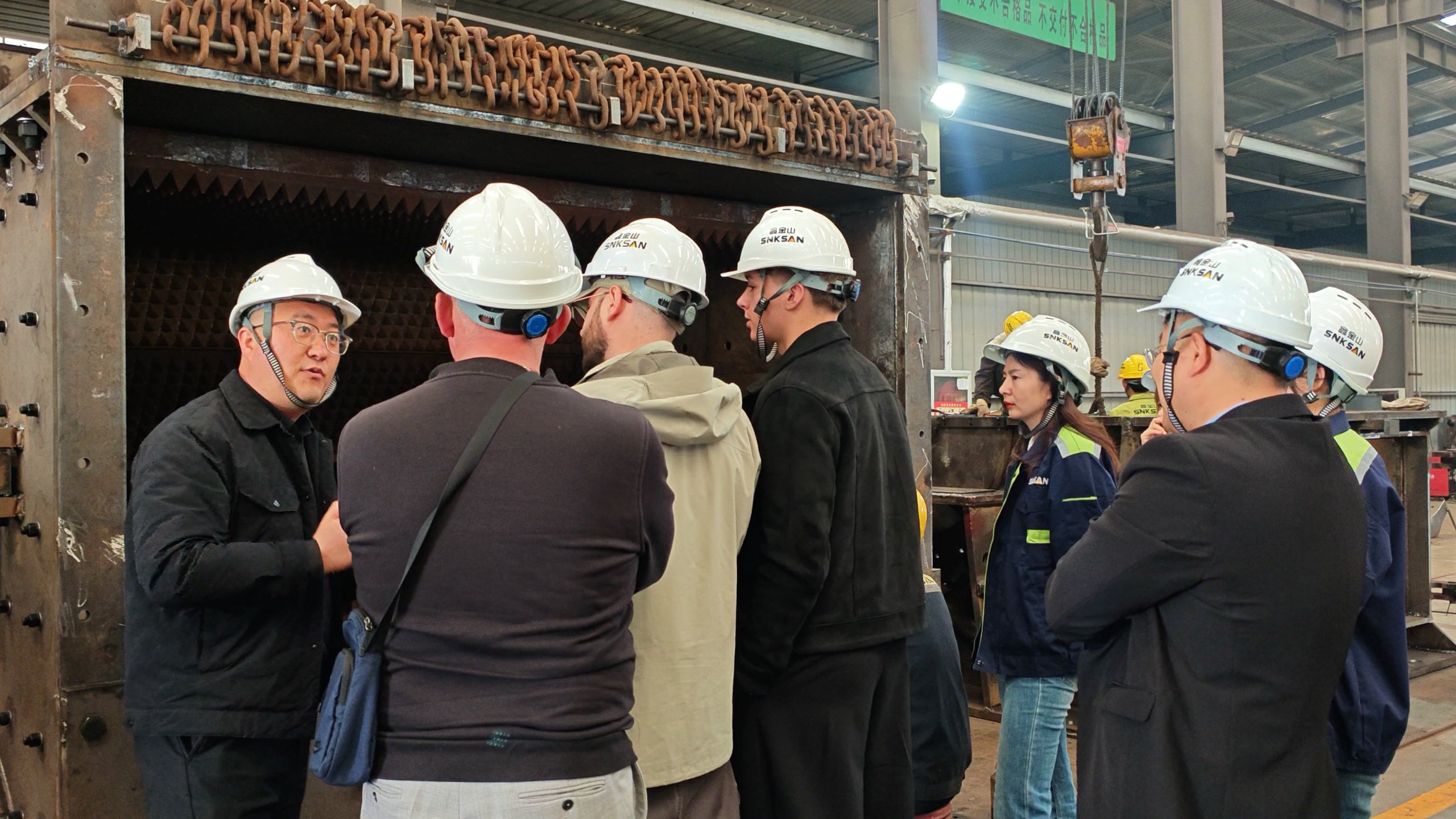 考察團一行在公司市場團隊的全程陪同下,先后深入鑫金山智能化生產車間、產品展廳及智能控制中心,近距離感受企業的研發實力、制造水平與服務理念。陪同人員結合企業發展歷程,詳細介紹了鑫金山在破碎篩分裝備研發、智能系統集成及EPC總包服務等領域的深厚積淀與突出成果,讓海外客戶對公司的全產業鏈服務能力有了系統認知。