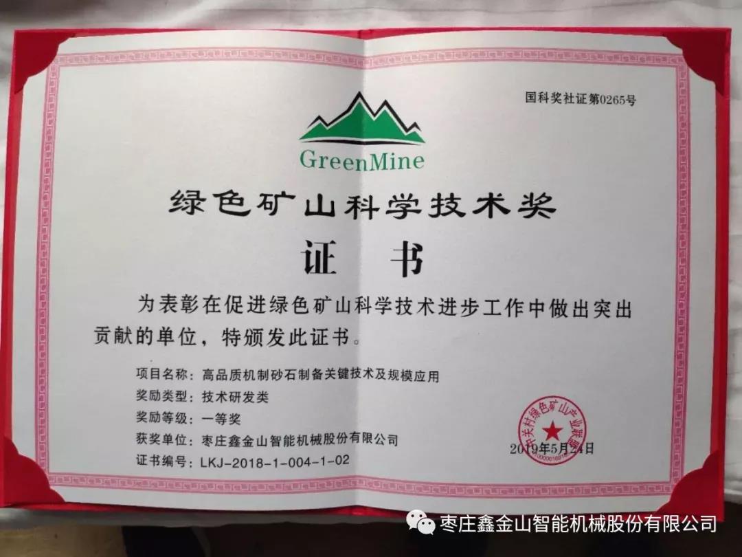5月,榮獲“2018綠色礦山科學(xué)技術(shù)獎”一等獎!