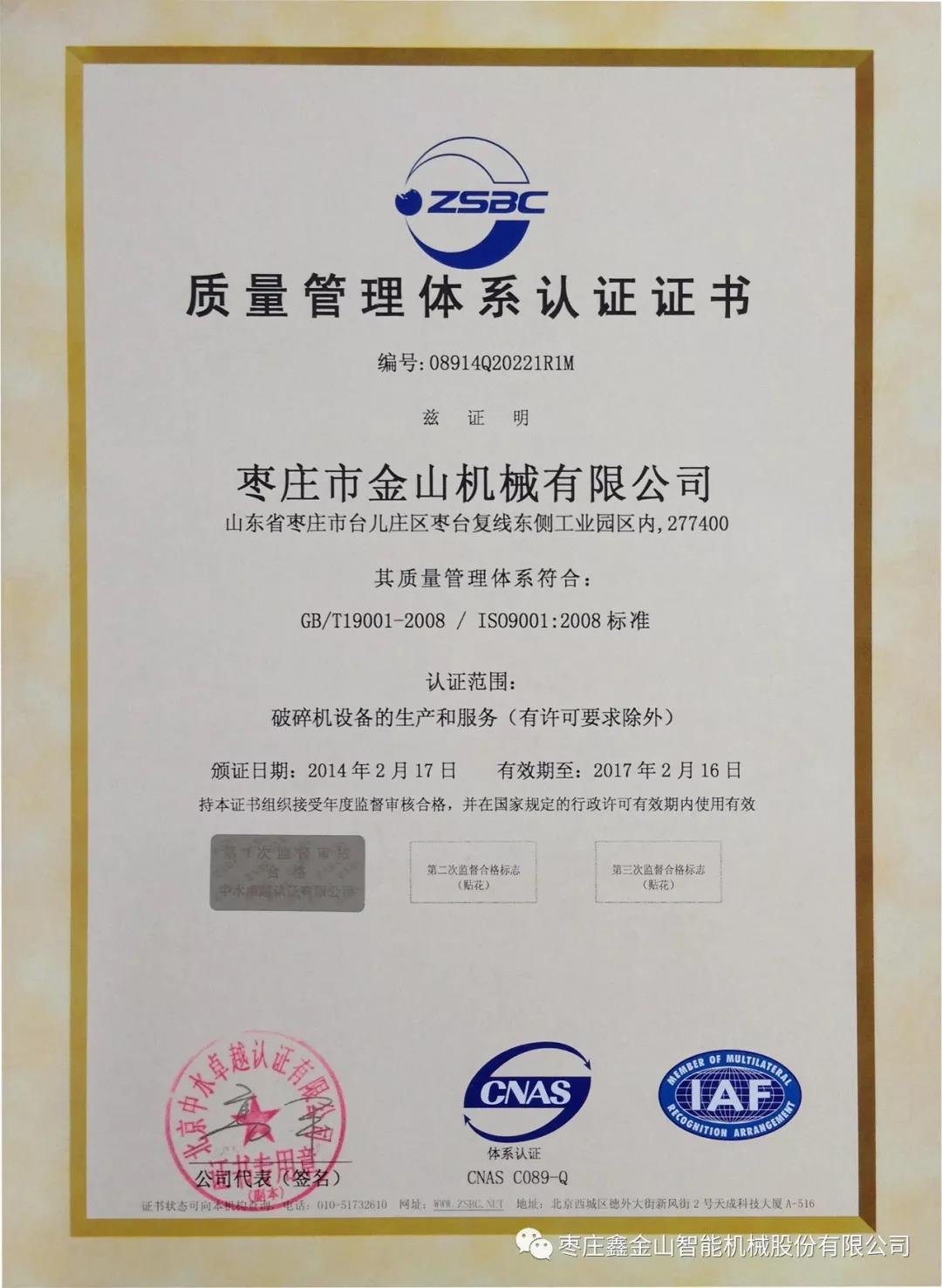5月,獲得“ISO9001質(zhì)量體系認證”,客戶(hù)滿(mǎn)意度不斷提升。8月,新型單段重錘反擊破所生產(chǎn)的高品質(zhì)骨料成功應用于京滬高鐵路棗莊段的施工建設中。