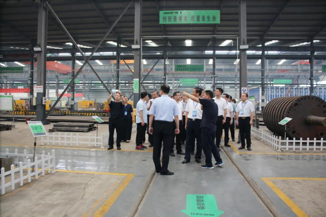 8月4日上午,市政府副市長(cháng)邵士官,市工信局局長(cháng)謝運深,市政府辦公室副主任秦紫寧,市發(fā)改委,市科技局等“雙千”工程專(zhuān)項工作小組成員組成的觀(guān)摩團在臺兒莊區委書(shū)記陳永生,副區長(cháng)杜軍的陪同下來(lái)到棗莊鑫金山智能裝備有限公司。鑫金山董事長(cháng)孫中巖全程接待,并向觀(guān)摩團一行詳細匯報了公司相關(guān)工作情況。
