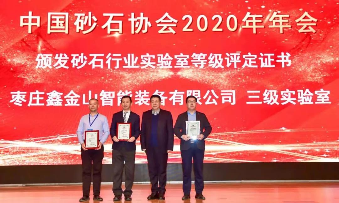 14日當天,為表彰優秀、樹立典范,引領和推動行業向著更高層次發展。在中國砂石協會年會現場進行了一系列盛大的頒獎儀式。儀式上,棗莊鑫金山智能裝備有限公司實驗室被評定為砂石行業三級(zui高等級)實驗室,董事長孫中巖入選綠色礦山建設專家庫專家。
