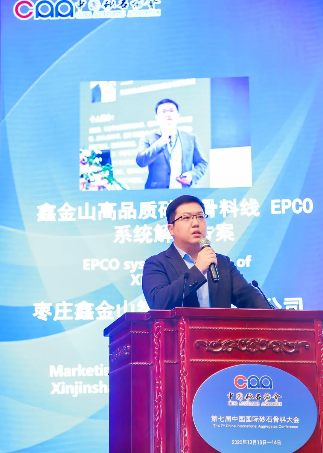 棗莊鑫金山智能裝備有限公司胡振霖作題為《鑫金山高品質砂石骨料線EPCO系統解決方案》的主題報告。作為中國高端砂石裝備制造商,鑫金山根據市場趨勢和客戶需求為礦山企業提供現場勘探、設計、礦石檢測、裝備加工制造、安裝、運營服務等EPCO總包模式,以高端化、智能化、規模化的市場定位,為客戶提供系統集成服務。
