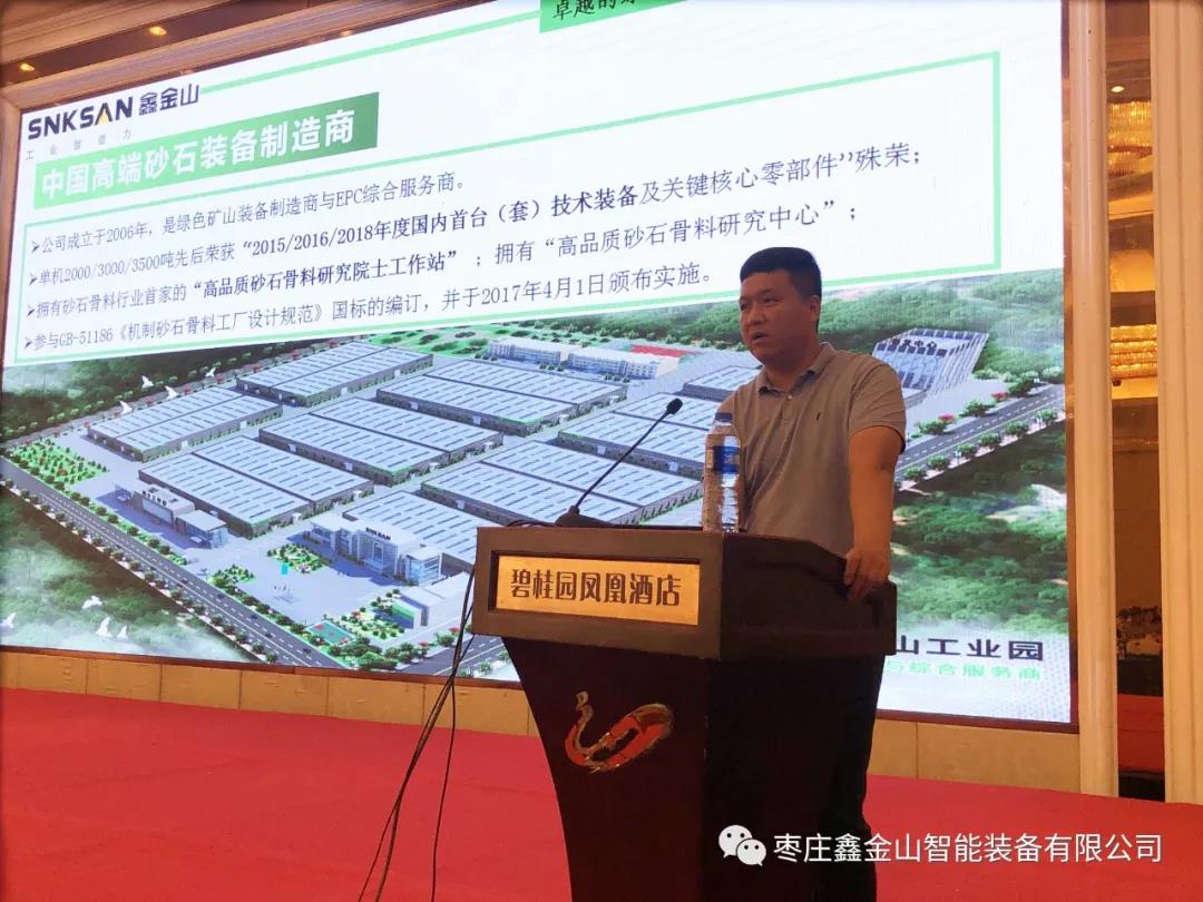 大會上,鑫金山華北區(qū)域總監(jiān)童德成作了題為《綠色智能精品砂石骨料生產(chǎn)線建設(shè)方案》的專題報告演講。他首先對公司產(chǎn)品、技術(shù)與核心優(yōu)勢進行了介紹,隨后重點分享了年產(chǎn)1500萬噸砂石骨料生產(chǎn)線建設(shè)方案和精品制砂系統(tǒng),并以數(shù)十個EPCO項目為案例,給大家展示了鑫金山設(shè)備和技術(shù)在礦山破碎領(lǐng)域的成功應用。