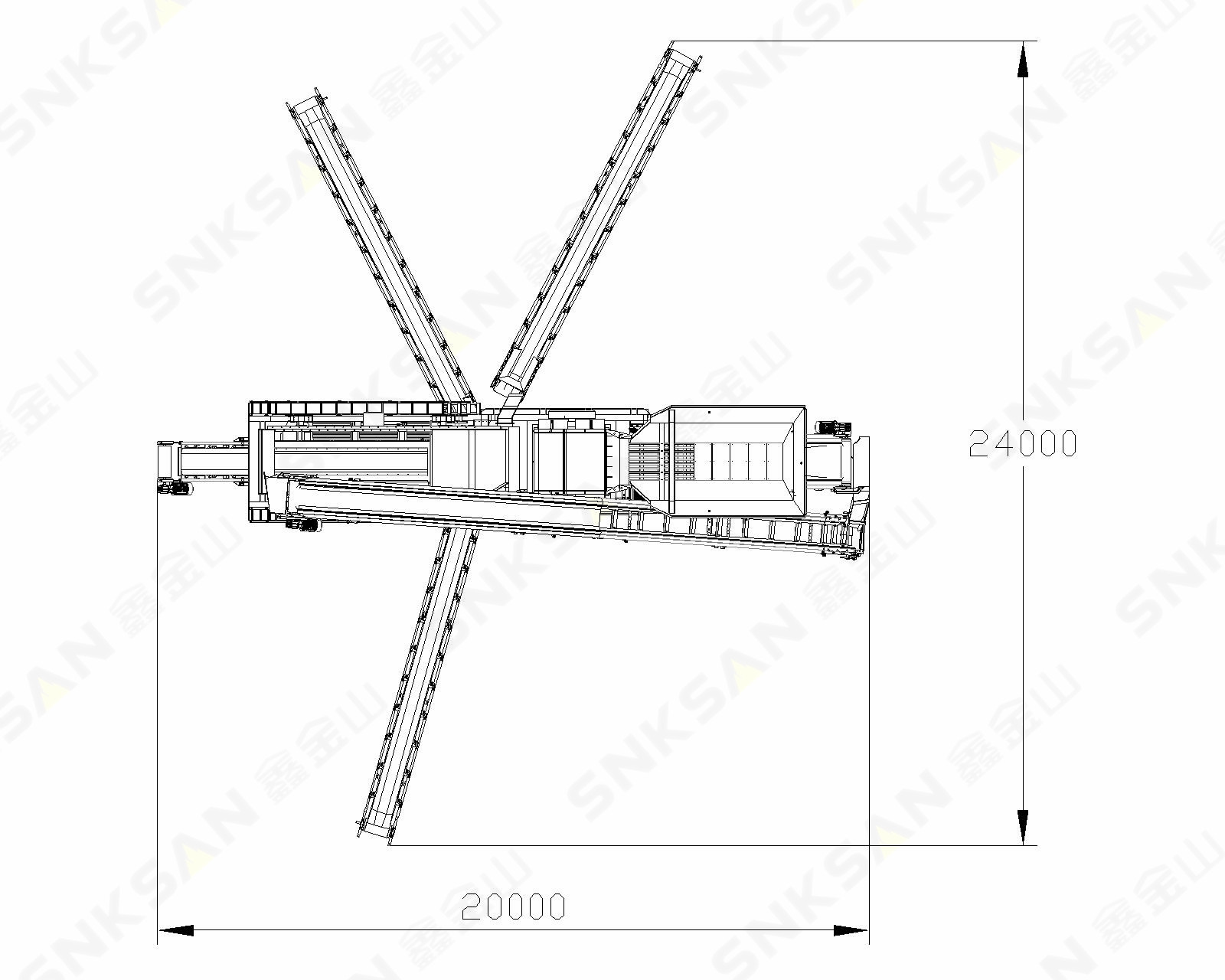 整機(含外掛皮帶機)工作時(shí),占場(chǎng)地尺寸長(cháng)20m*寬24m。程度節約了占地空間,適合場(chǎng)地空間狹小的現場(chǎng)。