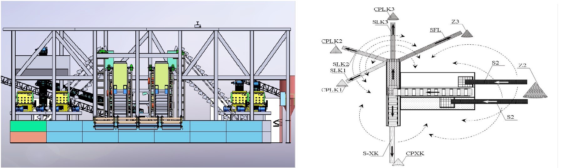 系統(tǒng)集成化的設(shè)計(jì),縮短工藝流程,減少了工序和設(shè)備, ≤1200mm的原料直接通過(guò)2段工藝可得到50%高品質(zhì)砂, 通過(guò)3段工藝就可100%純制砂。